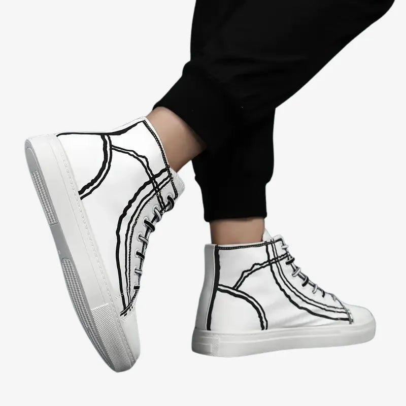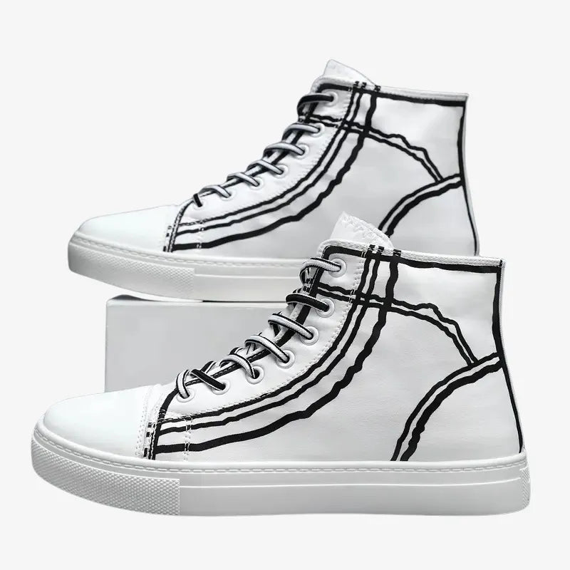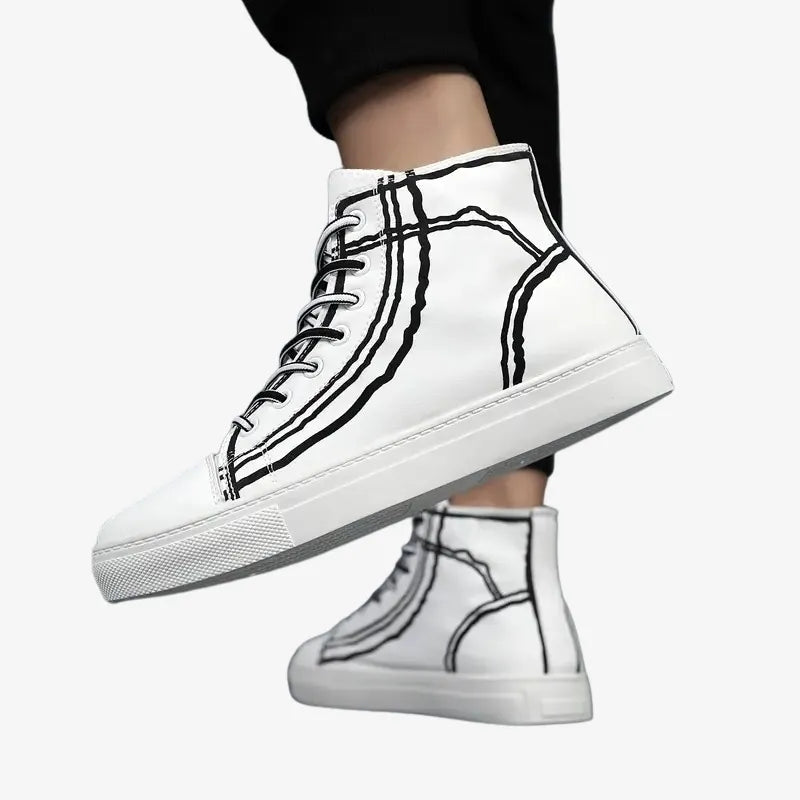 Les Sneakers Graphik Street se démarquent par leurs motifs noirs dessinés à la main, qui apportent une touche artistique et originale. Chaque trait irrégulier donne à ces sneakers un look urbain et moderne inégalé.