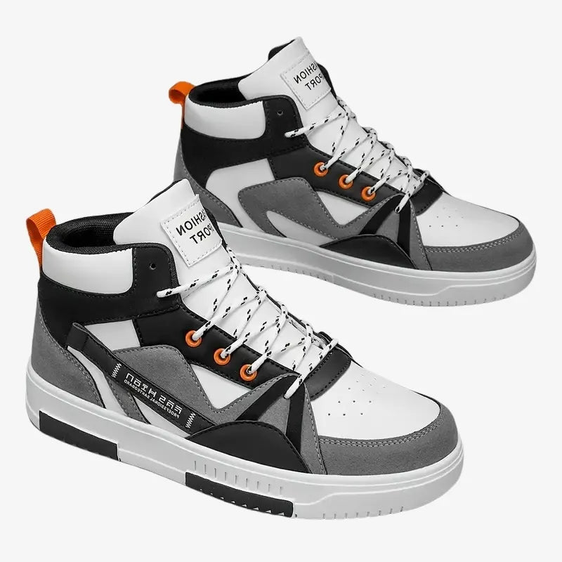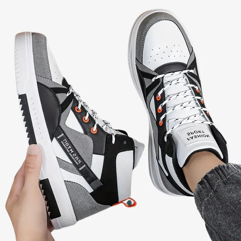Les Sneakers Urban Power sont conçues pour les amateurs de mode qui veulent se démarquer. Avec leur association de gris, noir et blanc relevé par des détails orange, elles affichent un look urbain et dynamique parfait pour compléter vos tenues streetwear.