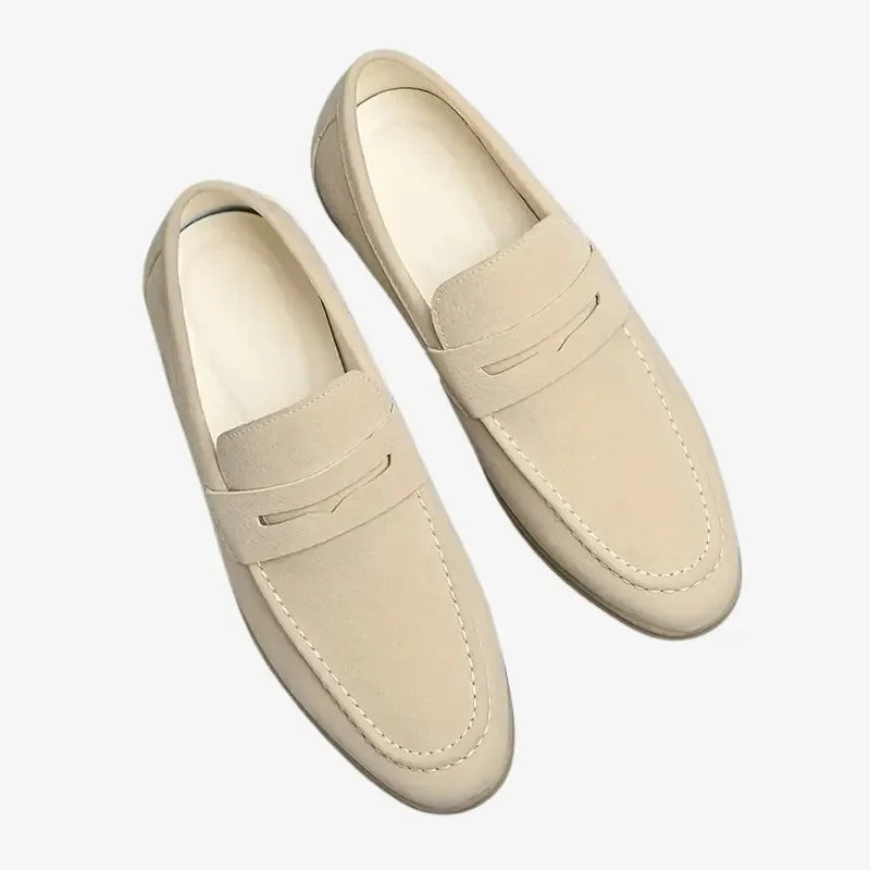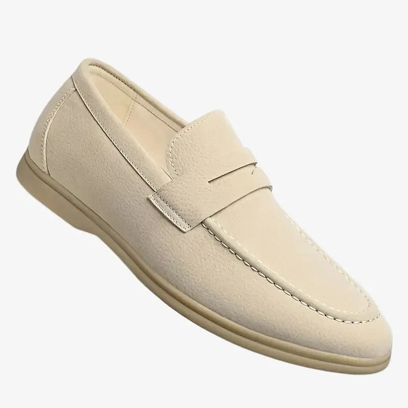 La Crème Élégance incarne le chic discret. Avec sa teinte beige intemporelle et sa finition texturée, cette chaussure plate est une pièce incontournable du dressing masculin. Elle se porte aussi bien en journée qu'en soirée, pour un style soigné sans effort.