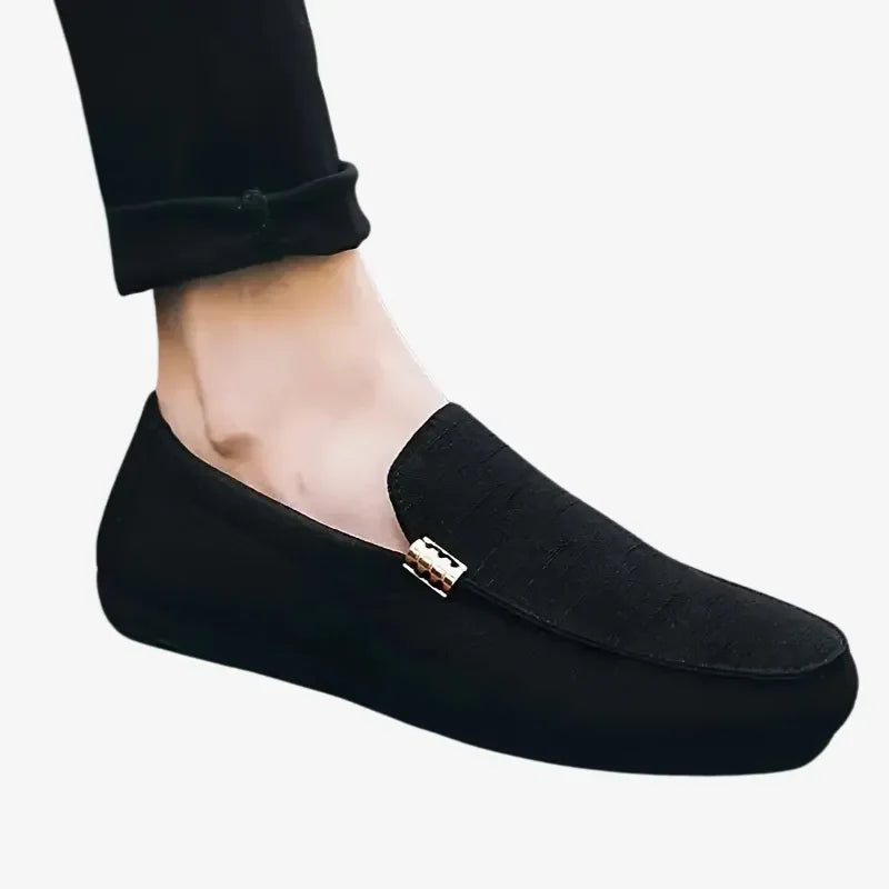 Pas besoin de lacets ou de boucles complexes : l' Élégance Noire s'enfile en un geste grâce à sa structure souple et son ouverture ergonomique. Une chaussure pensée pour les hommes pressés… mais stylés.