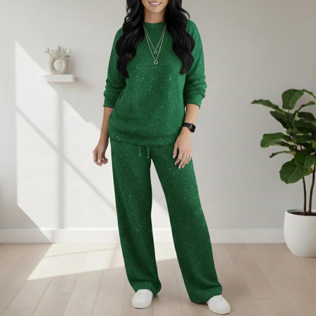 L’Ensemble pailleté s’adapte à toutes vos envies : détente à la maison, sorties relax ou moments conviviaux. Disponible en Noir, Bleu marine, Vert et Rouge, il permet de varier les styles tout en conservant une allure élégante et confortable.
