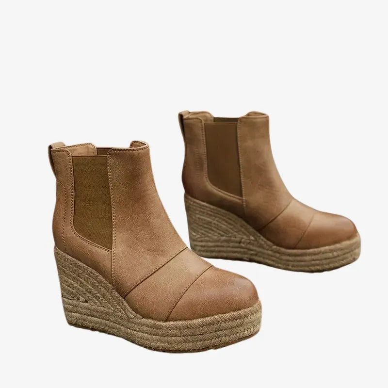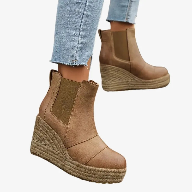 Avec leur plateforme tressée et leur forme montante, elles offrent un maintien parfait de la cheville et une démarche confortable. Idéales pour flâner en ville ou aller au bureau avec style.