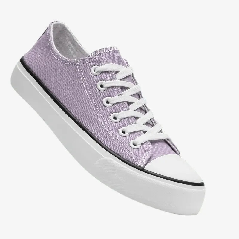 Inspirée des modèles classiques en toile, la Lilas Walk conserve une forme indémodable tout en ajoutant une touche d'originalité avec sa semelle légèrement épaissie et sa pointe renforcée en caoutchouc blanc.