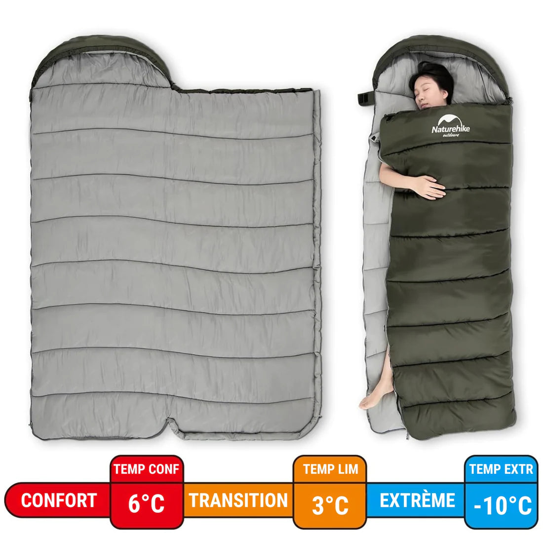 Sa forme enveloppante suit la silhouette du corps sans l’encombrer. L’isolation est bien répartie pour éviter les zones froides, offrant ainsi une chaleur homogène durant toute la nuit.