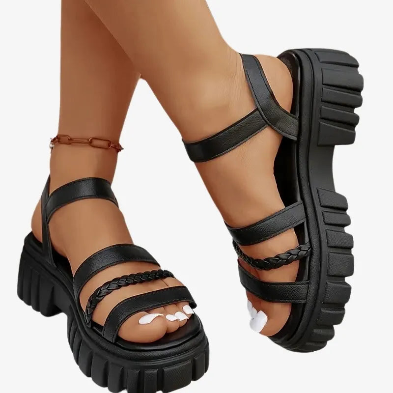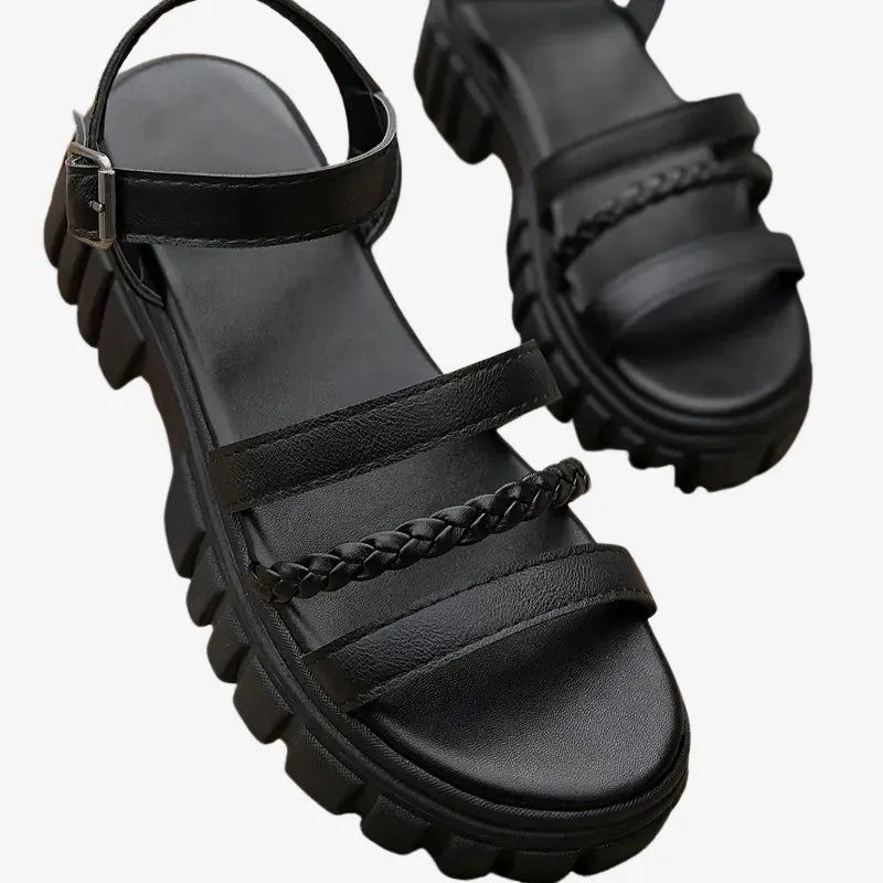 Affirmez votre style avec la Urbaine Tressée , une sandale à plateforme qui allie minimalisme et audace. Son design épuré avec une touche tressée vous offre une allure chic et contemporaine.